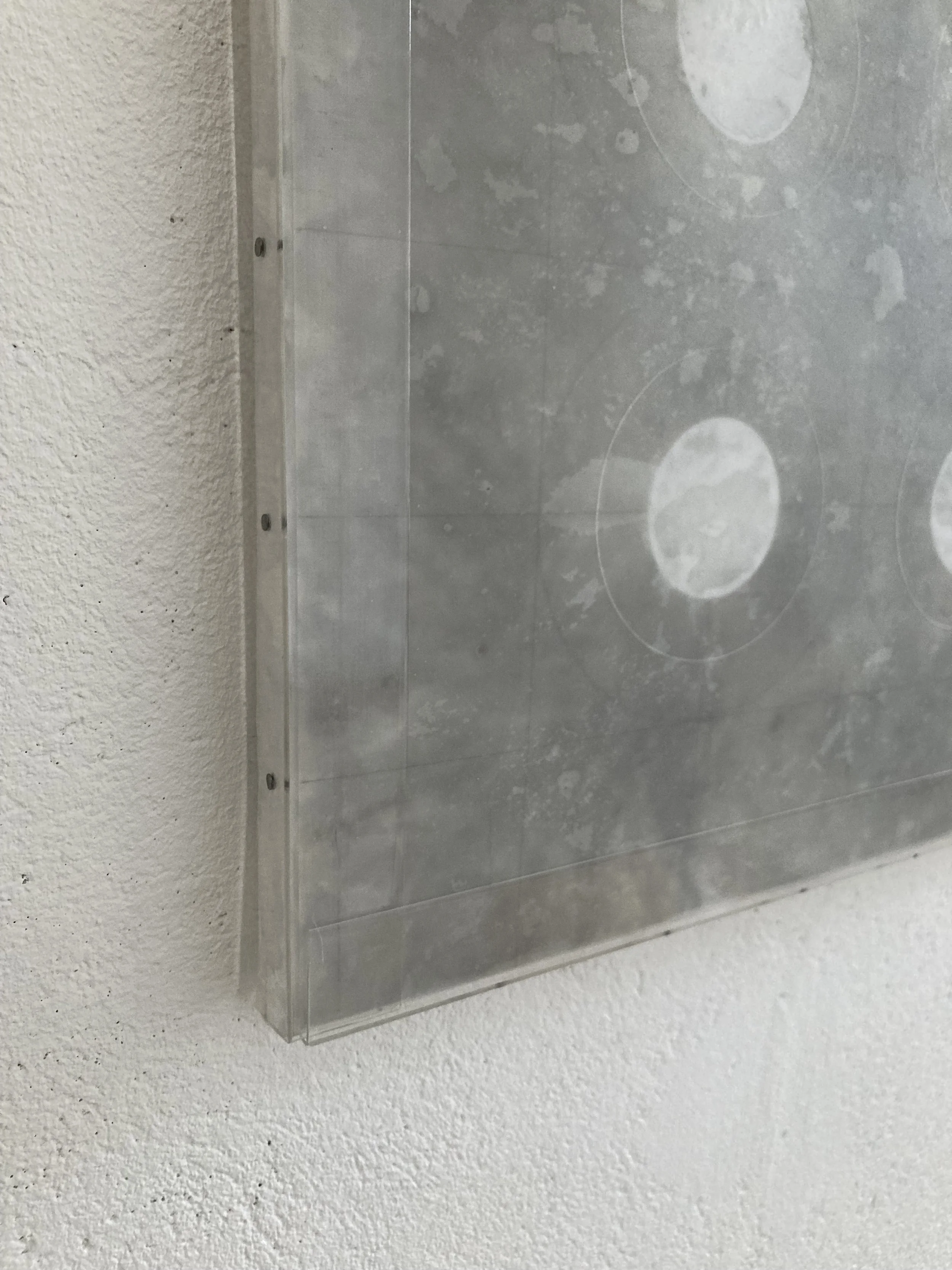 Paper, pigment, paraffin wax, canvas on wood, plastic and nails