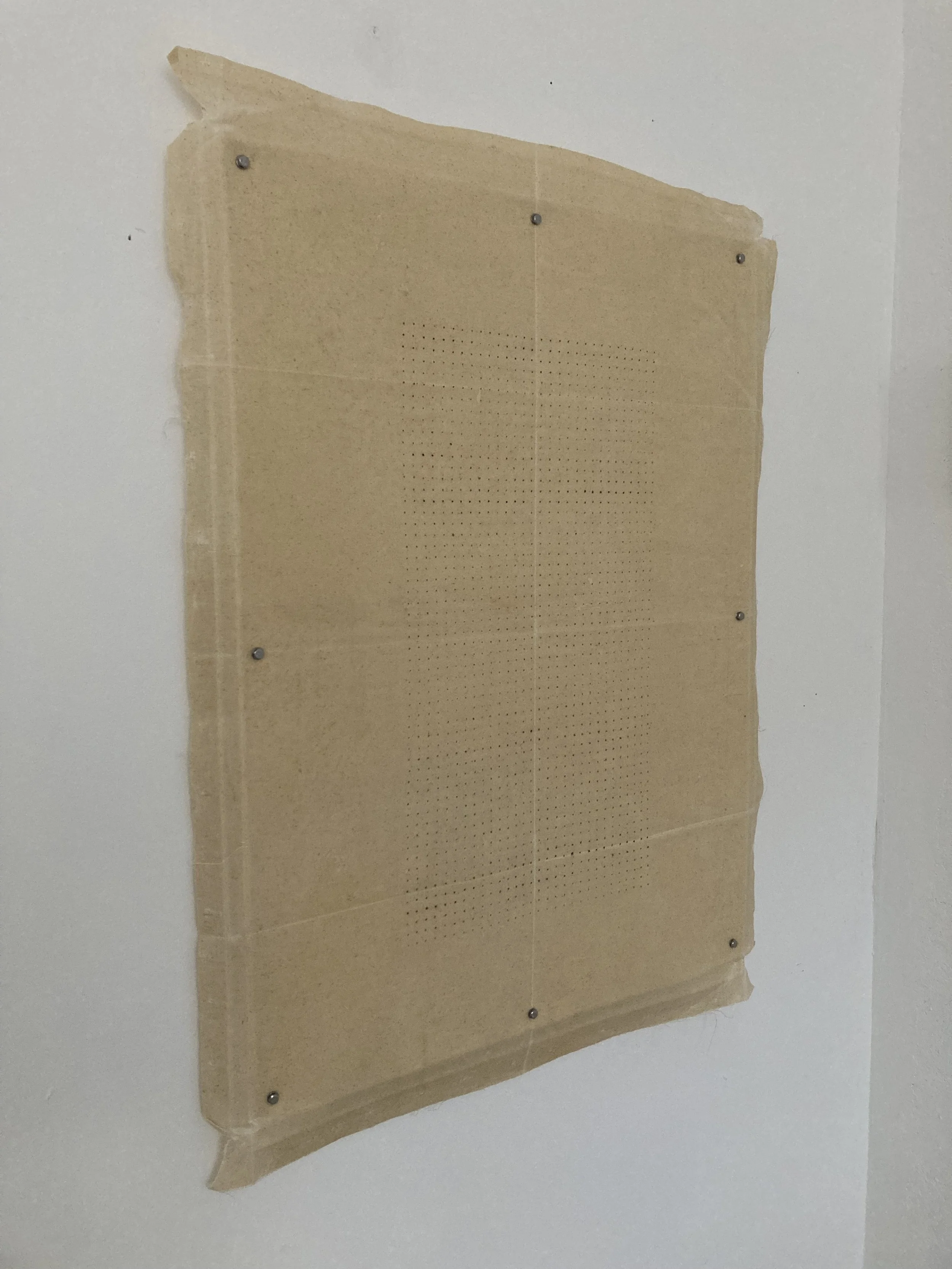 Cotton, graphite pencil, paraffin wax, canvas on wood and metal hardware
