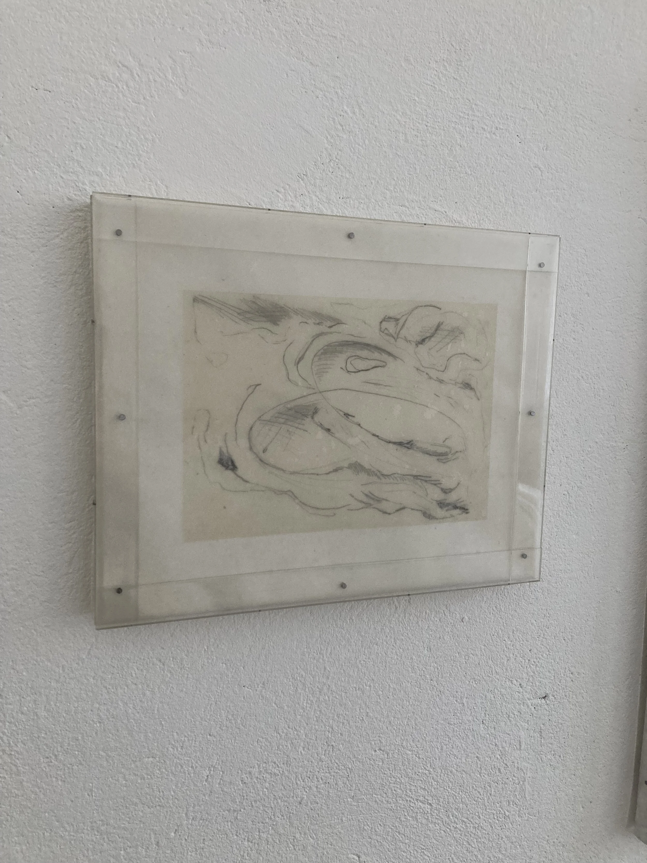 Graphite pencil, paper, canvas on wood, beeswax, paraffin wax, plastic and nails