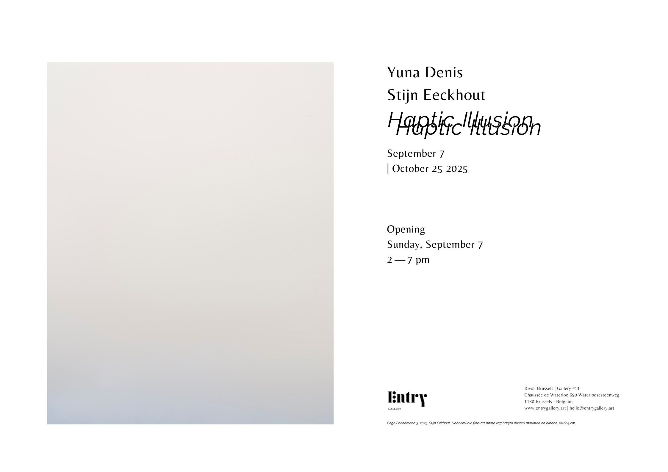 Haptic Illusion drifts into the impapable realm of visual perception. Artists Yuna Denis and Stijn Eeckhout delve into the shifting nature of illusion and its many reflections.