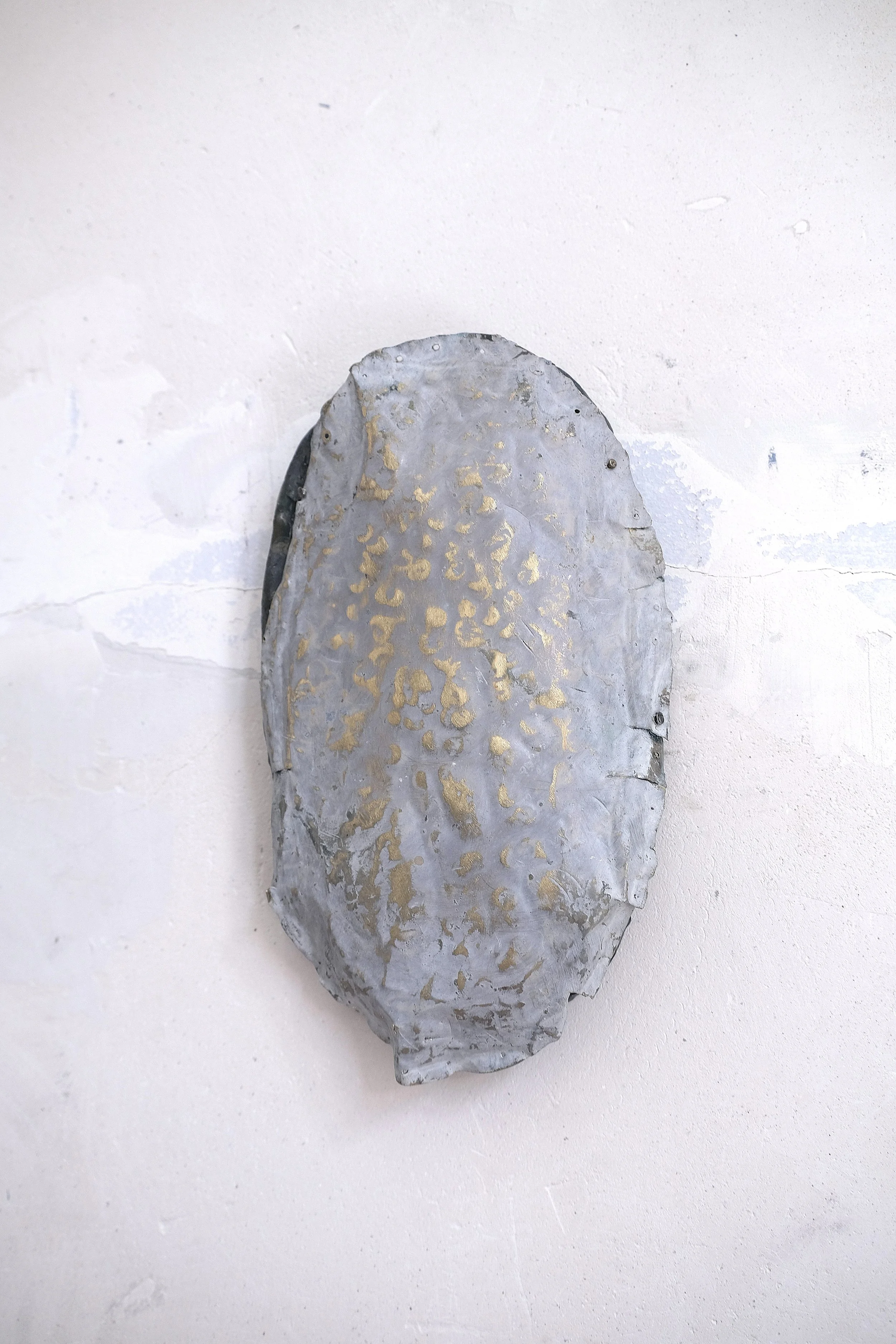Oil paint on hammered and sanded plaster, MDF wood studded and painted with wax and pigments